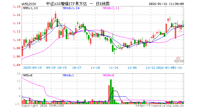 1月16日,截止午间收盘,中证A50增强ETF易方达(512030)跌0.44%,报1.130元,成交额77.07万元。中证A50增强ETF易方达(512030)重仓股方面,宁德时代截止午盘跌0.21%,贵州茅台跌0.29%,三一重工跌0.27%,分众传媒跌2.38%,山西汾酒跌1.26%,药明康德涨1.32%,中国平安跌1.41%,中芯国际涨1.21%,立讯精密涨2.09%,比亚迪涨0.44%。